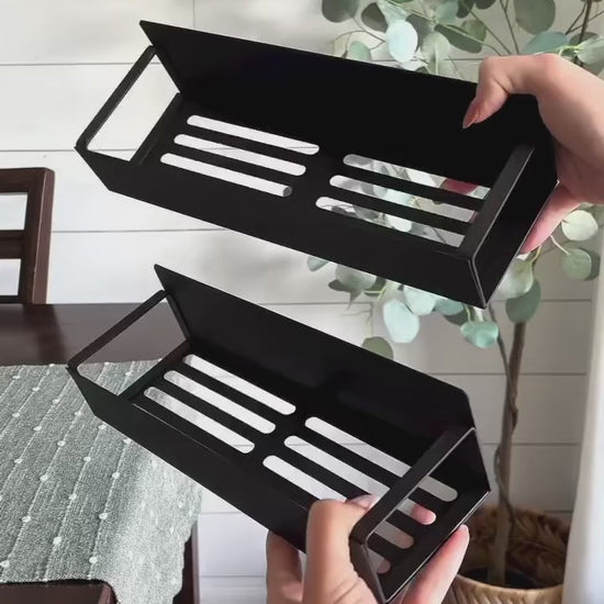 Sticks to fridges, washing machines, metal backsplashes, and other metal surfaces.Holds up to 8 lbs. Matte-finish steel. Designed for modern homes.