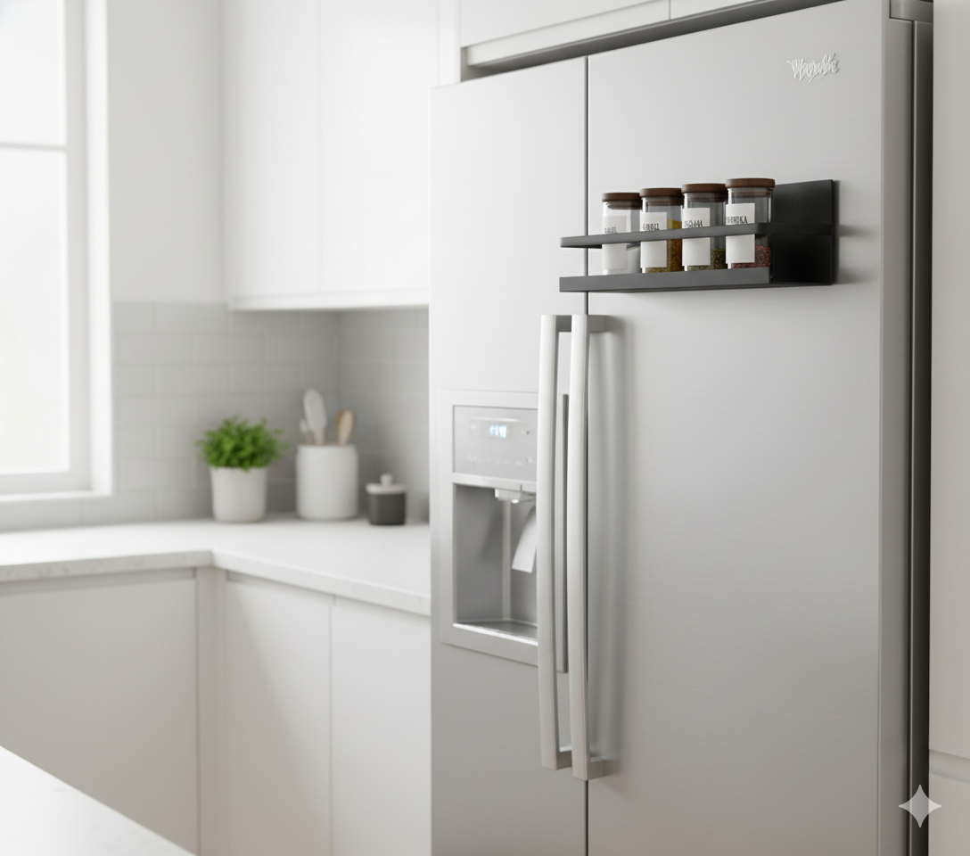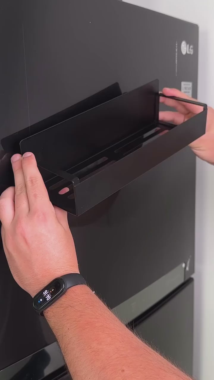 Attach instantly to your fridge or metal backsplash. No drilling. No damage.